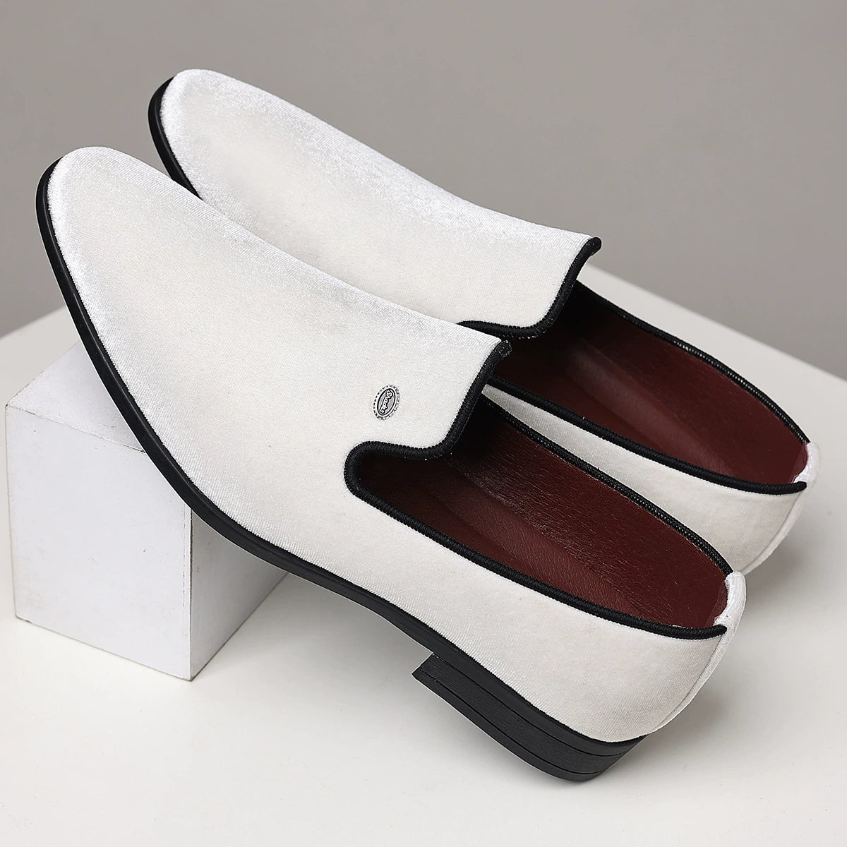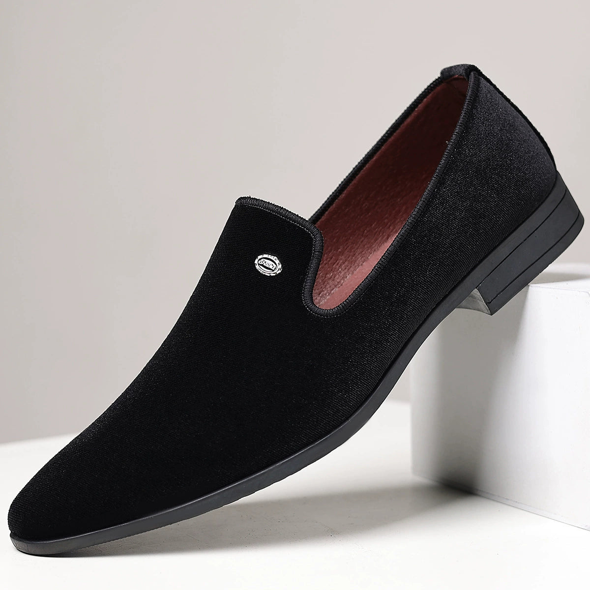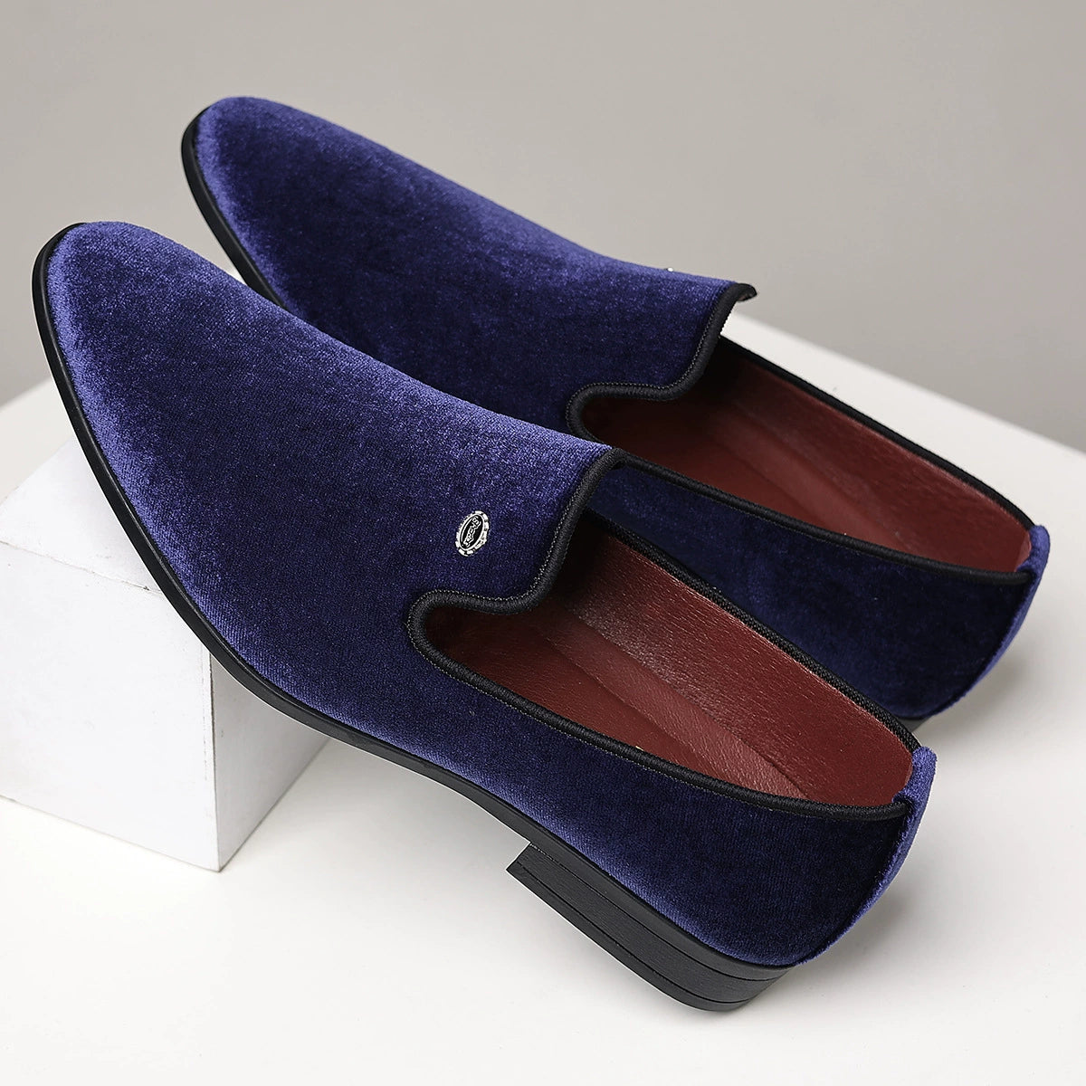The Christian Monroe Velvet Loafer, perfectly designed for the elegant man who owns the room at any moment. Wrapped in rich, lustrous velvet, with a premium maroon leather interior, a soft cushioned insole for effortless comfort, and a matte black anti-slip rubber outsole for steady confidence with enduring elegance.