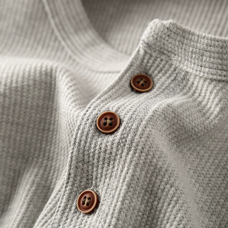 Crafted from 100% waffle-textured, premium stretch cotton. This Henley offers breathable comfort with a lightweight feel, exceptional softness against the skin, and a classic buttoned neckline that makes it effortless to layer or wear on its own.