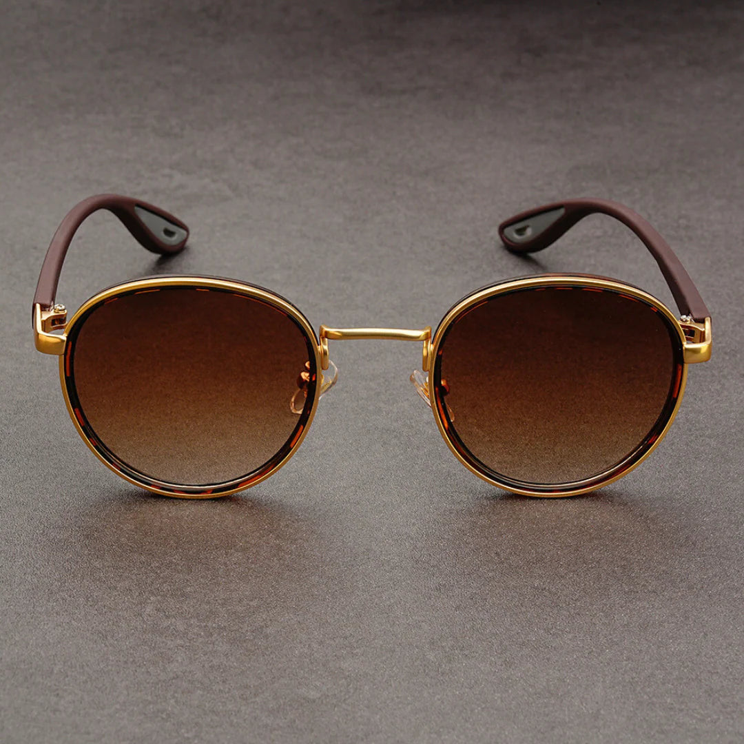 A nod to the greatest era, with just enough edge. Effortlessly smooth and crafted to catch the right kind of attention, these retro-inspired rounds feature polished gold rims, full-spectrum UV400 protection, a lightweight design for all-day wear, and soft matte anti-slip arms that stay comfortable all day.