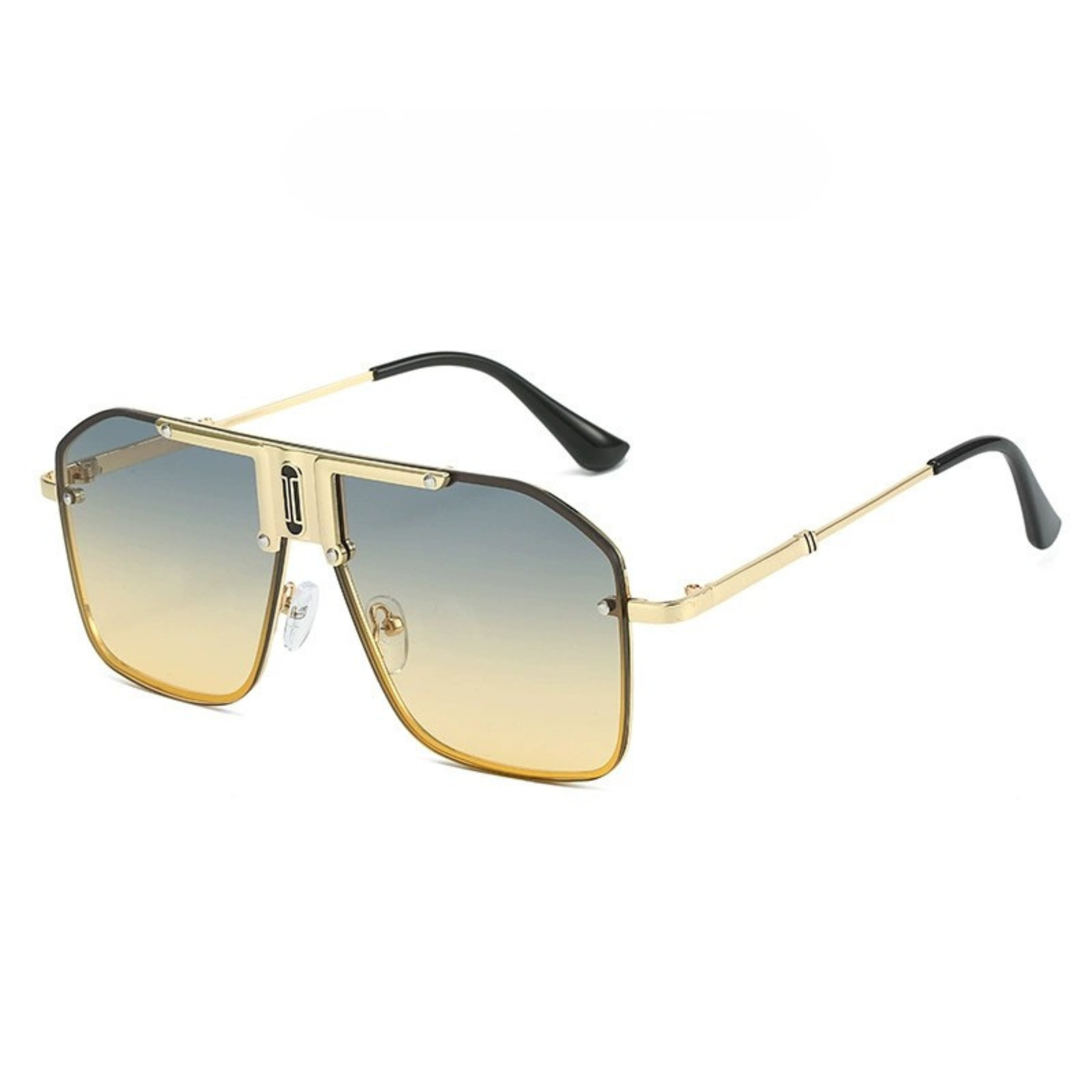 bold, sleek, and built to own the light. With a geometric metal frame and gradient lenses, they hit the perfect balance between luxury and attitude. Whether it’s city streets or rooftop scenes, these shades don’t follow trends, they set them.